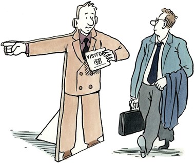 Bitte holen Sie Ihren Besucherpass an der Rezeption ab.